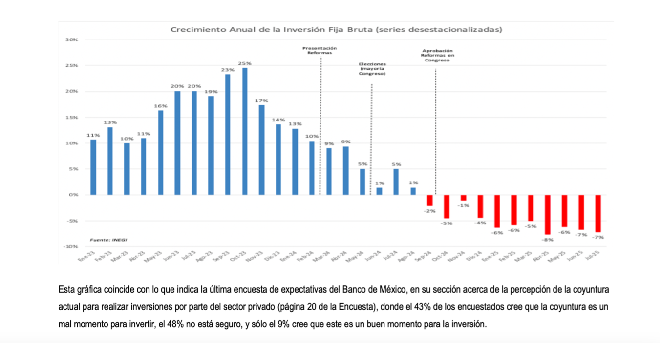 La incertidumbre generada por las reformas se exacerbó con la política arancelaria de Estados Unidos y explicando el crecimiento tan deficiente de la economía mexicana. Ante este escenario se evidenció que