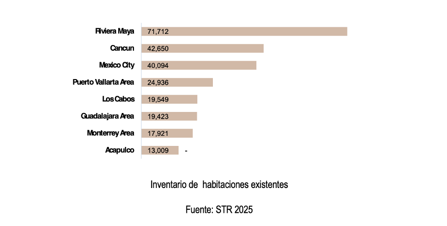 expansión generalizada durante el primer semestre de 2025. La Riviera Maya mantiene su liderazgo, en contraste Acapulco manifiesta el menor de los avances, como se puede apreciar en la siguiente gráfica:
