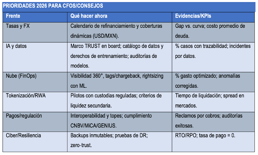 Este año, como una lectura de tarot, nos invita a combinar táctica (rangos, ventanas de tasa) con estrategia medible: IA con gobernanza, nube con FinOps, tokenización con liquidez y cumplimiento, ciberseguridad con resiliencia demostrable.