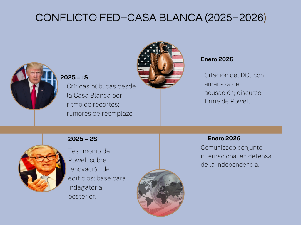 si la Fed pierde independencia, otros países podrían justificar intervenir sus propios bancos centrales, afectando cómo los mercados evalúan credibilidad, riesgo y expectativas de inflación.