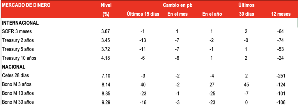 Ante la posibilidad de un default, predominó el sentimiento de aversión al riesgo con el CDS de 1 año repuntando a máximos históricos. Sin embargo, a fin de mes regresó el optimismo ya que la Cámara de Representantes aprobó la suspensión del techo de deuda hasta el 1 de enero de 2025.