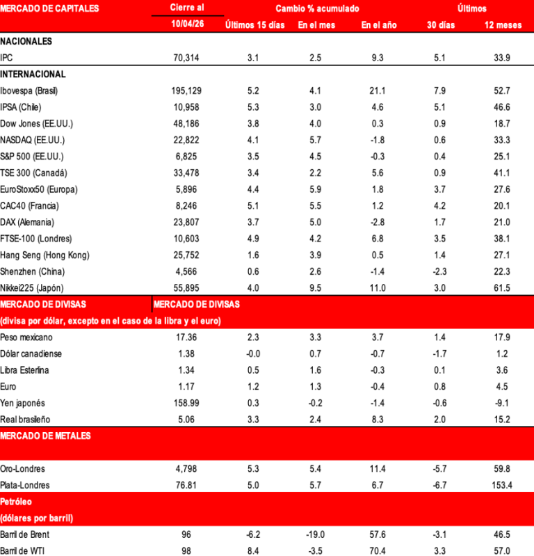 Conoce los datos más relevantes para evaluar el estado de la economía del país con la información que se presentará del 6 al 10 de abril de 2026.